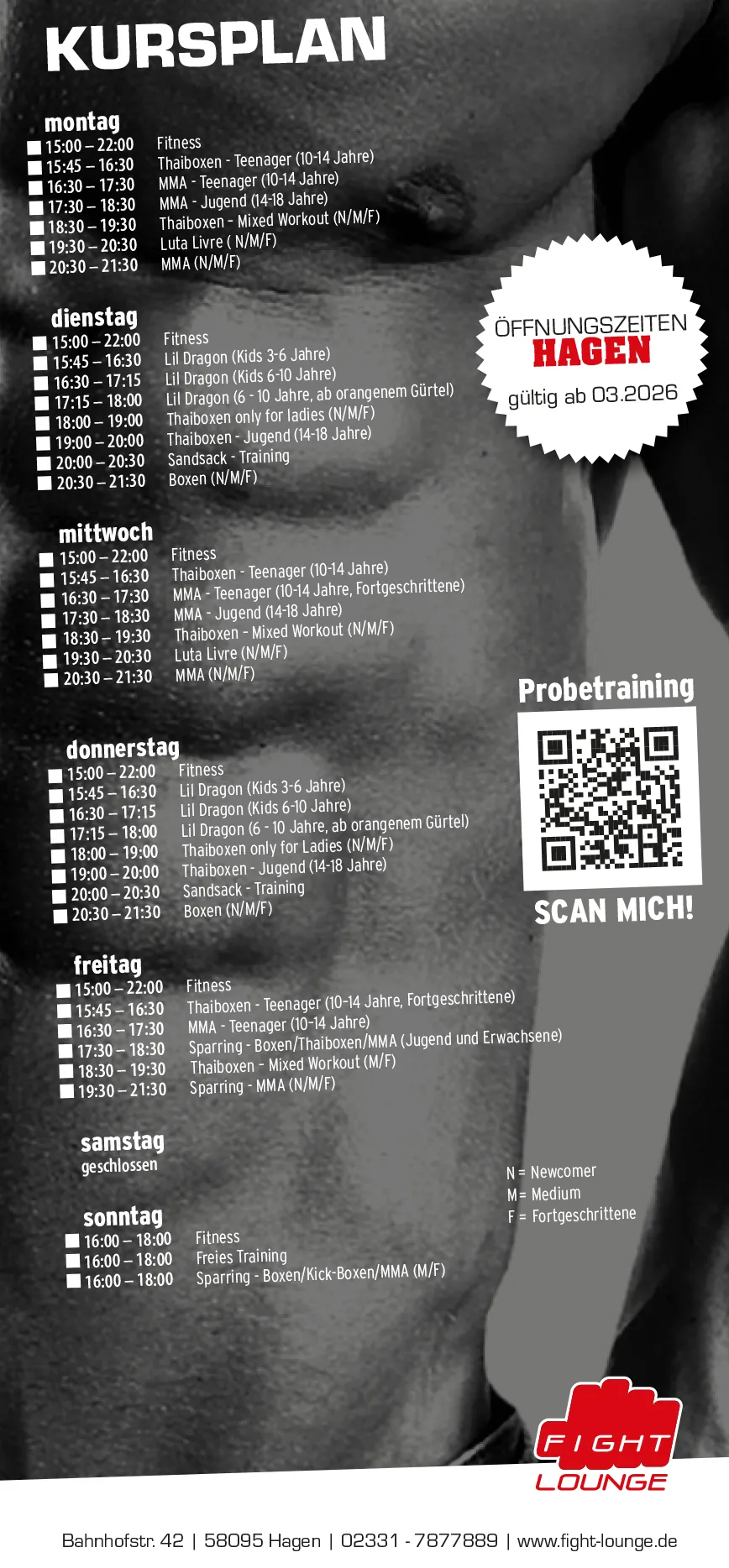 Kursplan Kinder und Jugend 2025 - Fight Lounge - Hagen